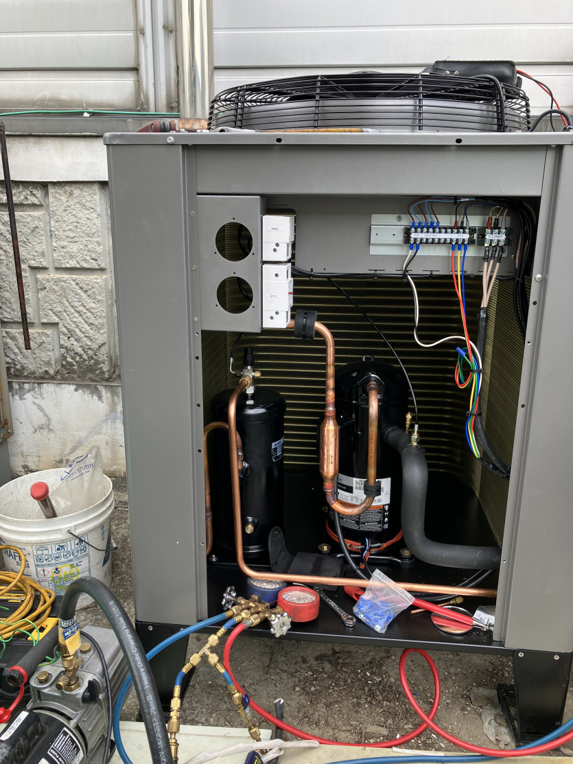항온항습기, 저온저장고철거 / 항온항습기 실외기 진공 작업중-진공작업을 하는 이유는 배관내부의 습기를 제거 해서 압축기에 습기…
